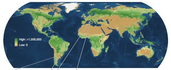 Another important aspect of the Crowther paper was that its authors claim that a region's tree density "can also be a meaningful metric to guide forests management practices and inform decision-making in public and non-governmental sectors". In fact, this work laid the foundation for an explosion of international tree-planting campaigns that in turn grew the idea to use forests as nature-based solutions to climate change. Which I've written about before.