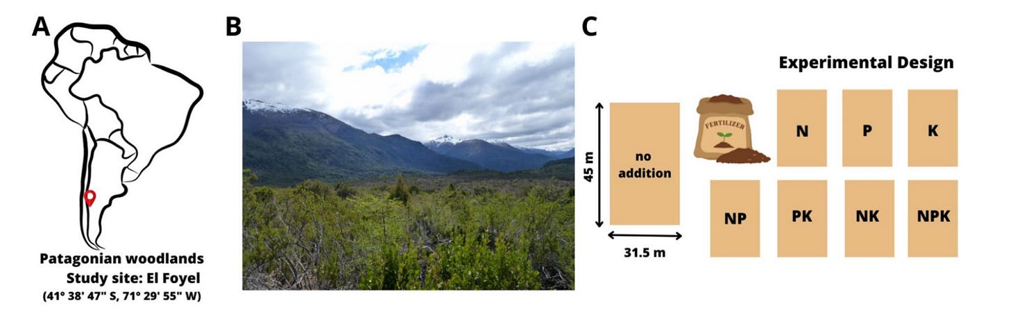 Recently, some colleagues of mine published research on these topics. Margarita Fernández, who led the work, conducted an experimental fertilization study in a northwestern Patagonian woodlands. Unlike North America, South American forests have not been exposed to high nutrient additions, making Patagonia an optimal location to conduct this kind of research.